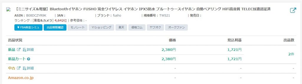 販売価格の最安値がわかっているので、最安値でも利益が取れる価格で仕入れましょう