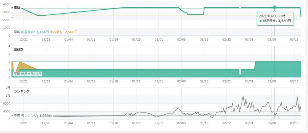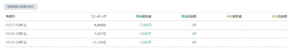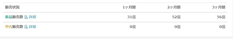 ランキングが上がっていて、かつ新品出品者数が減っていれば、新品がうれたことがわかります、