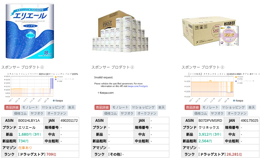 価格競争は免れないですし、モノレートほどの詳細な分析はできないです。