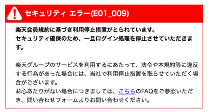 楽天のアカウントが停止する条件