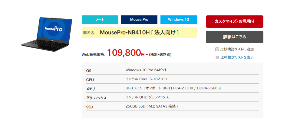 パソコンショップへのリンクをいくつか用意してあるので、スペックと価格の確認をしてみてください。