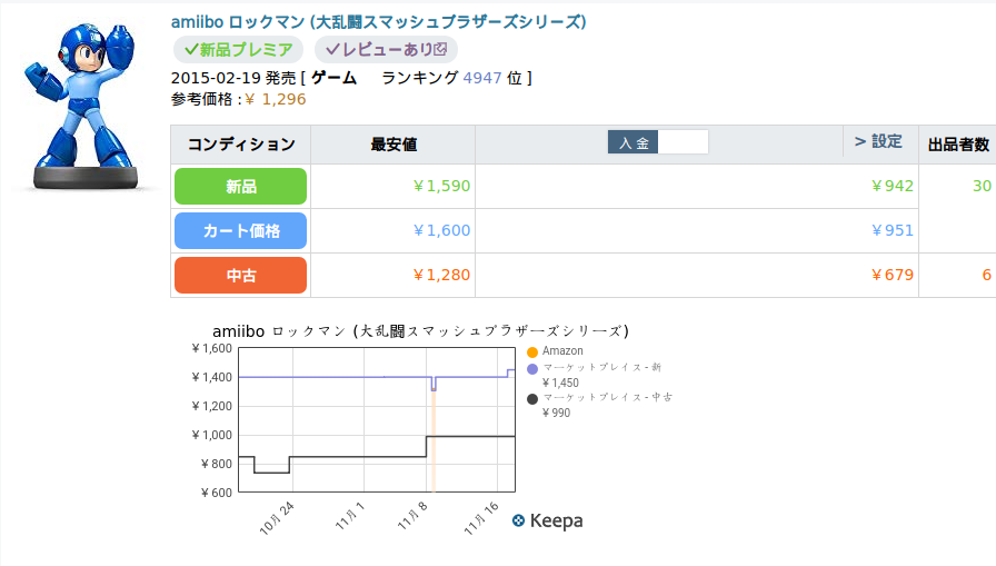 まずは、コンディションごとの最安値を確認します。