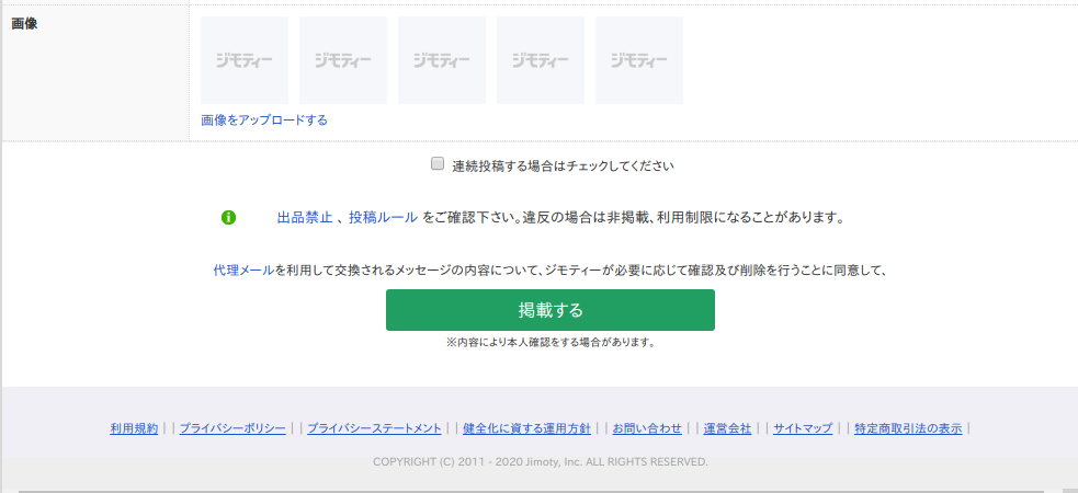 必須項目を入れて、「掲載する」ボタンを押せば終わりです。