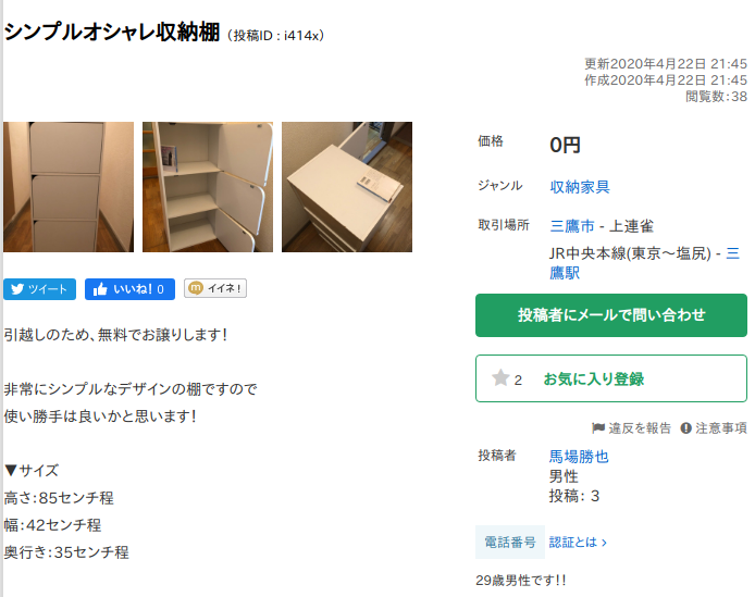 ジモティーを使いました!!