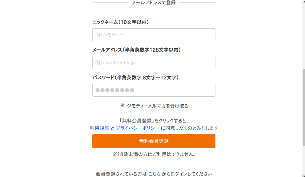 「無料会員登録」ボタンを押せばメールが来ますので、