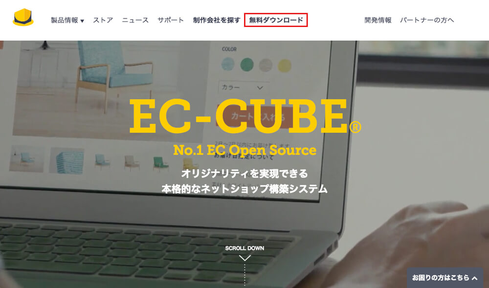 公式サイトより、EC-CUBEのソフトウェアが入っているファイルをダウンロードします。
